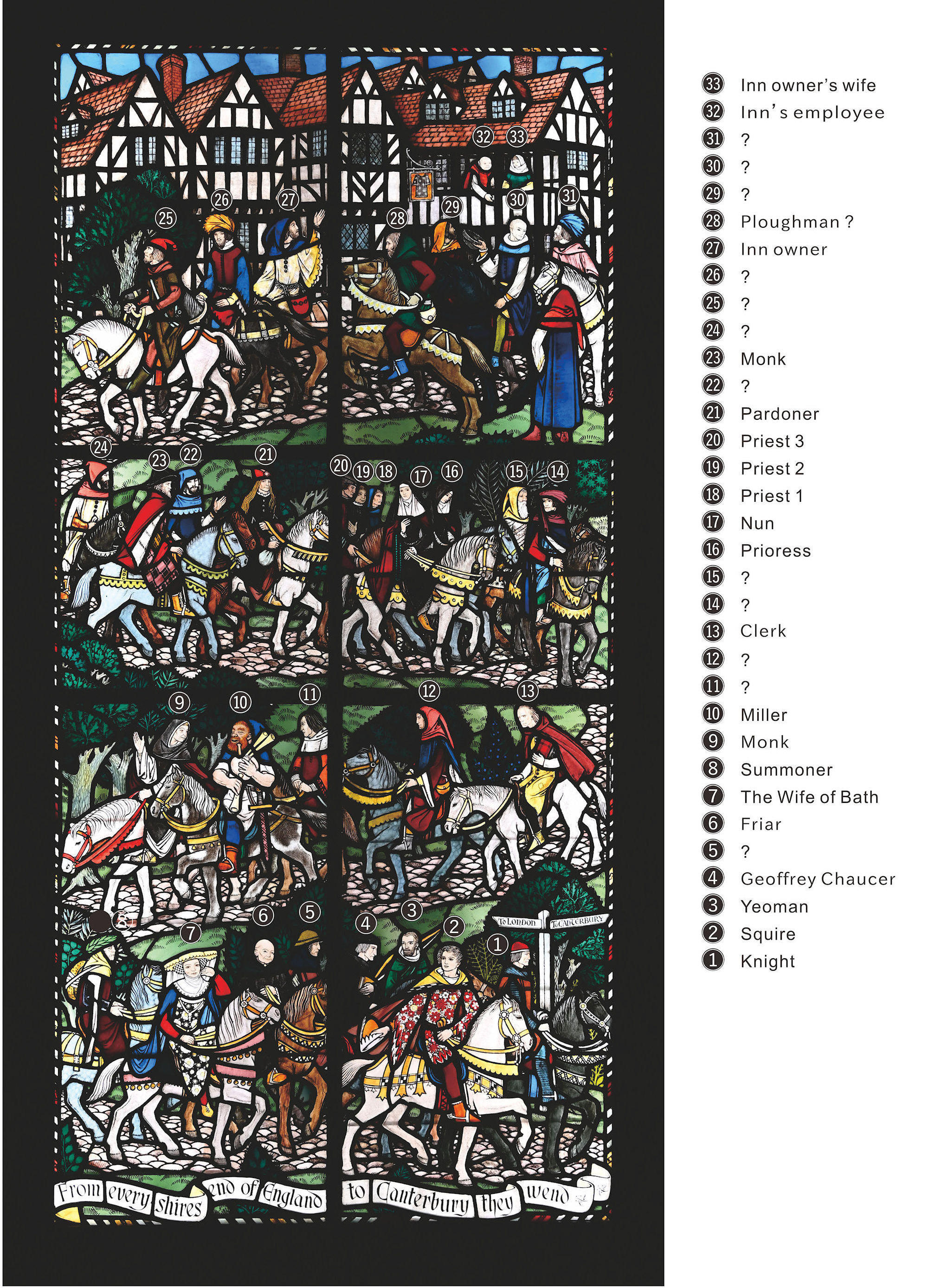 the identification of figures in the museum’s Canterbury Tales Stained Glass